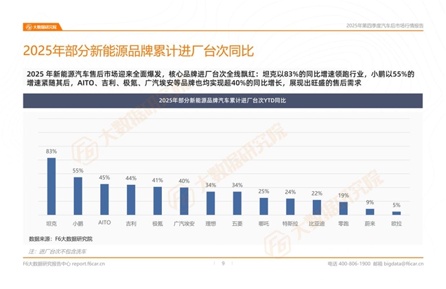 ? 2025年,新能源汽车售后市场迎来全面爆发,核心品牌进厂台次全线飘红,展现出旺盛的售后需求。