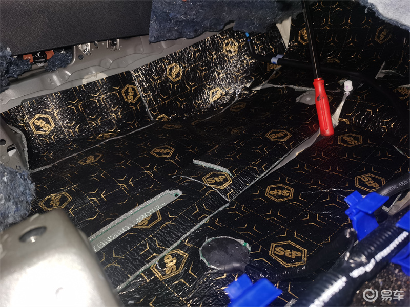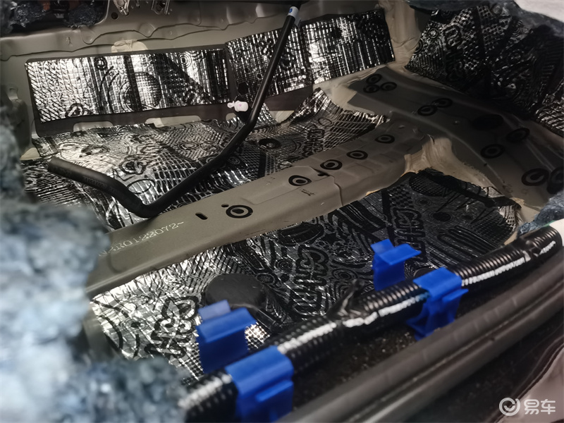 前底盘的隔音处理同样采用了STP小炸弹、航空AC06棉和NB3反弹棉的三重组合。STP小炸弹安装于前底盘,可以减少底盘与路面接触时产生的震动和噪音。航空AC06棉紧接其后,负责吸收噪音,并进一步优化隔音效果。