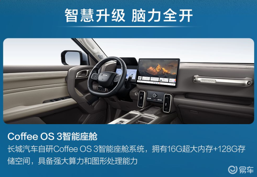 新车从智能、舒适、性能进行了升级。如搭载了长城汽车新一代Coffee OS 3智能座舱系统,中控屏升级到了14.6英寸,还有W-HUD等等;舒适配置上,配备了同级少有靠背+坐垫双通风,三档可调;性能更是配备了博格华纳瀚德第6代智能电控四驱系统,响应快,动力强,舒适稳定更灵活。