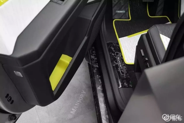 车内设计延续了今年2月Mansory发布的版本,采用黑、白、亮黄三色拼接,彰显个性,兼具豪华感与未来科技感。