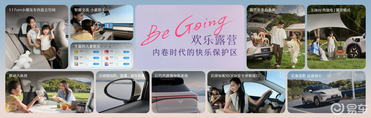 周末露营开它,缤果S可化身为“空间魔术师”,能装下你对自然的所有向往,1450L下沉式后备箱及全车25处贴心储物布局,每一处都为实用考量,轻松收纳所有装备,3.3kW外放电可稳定输出220V标准电压,随接随用,户外设备随心用,让每一次逃离城市的计划都能轻松实现,欢乐且有意义。