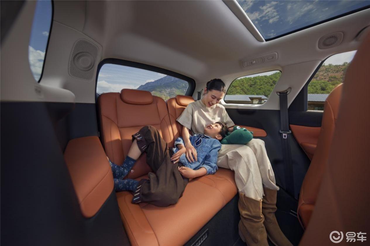 零跑C16的车身长度则为4915mm,轴距2825mm,虽然尺寸上略小于银河M9。但零跑C16借鉴了MPV的设计理念,通过优化座舱布局和机械结构,实现了67.2%的“得房率”,乘坐空间表现同样不赖。具体来看,车辆纯平地板设计提升了脚部活动和横向移动的便利性,第三排座椅区域的顶部也做了掏空处理,改善了头部空间表现,同时第三排座椅也进行了“抬高”和“加长坐垫”的处理,不会有坐“小板凳”的感觉。使第三排乘客也能获得相对舒适的乘坐体验。