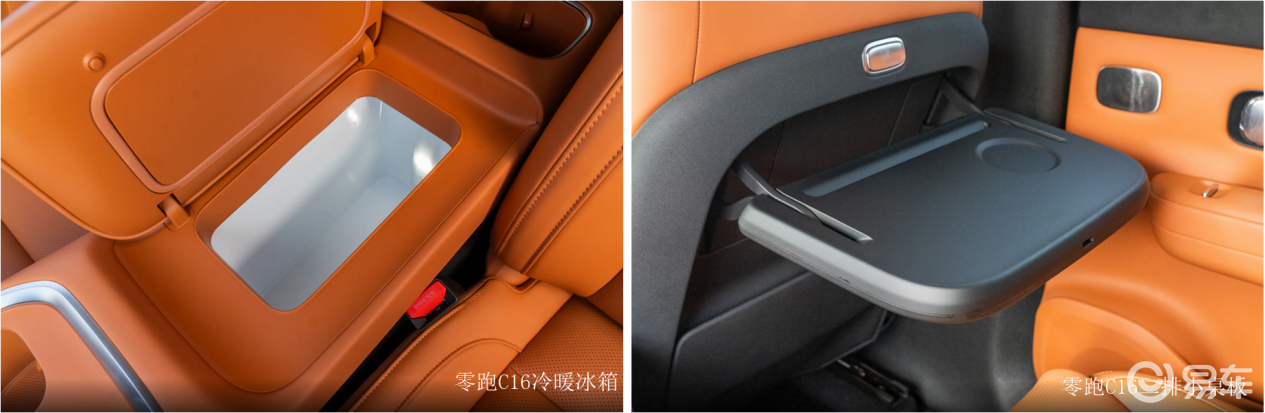 当然吉利银河M9在舒适性配置方面也有不错的表现,像前两排座椅同样支持加热、通风功能,不过,在这个价位区间内,相比零跑C16,它缺失了小桌板、车载冰箱,并且后排座椅按摩功能只有从售价20万以上的高配车型才有。客观的说零跑C16在实用性配置上确实更有诚意。