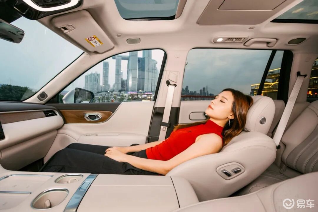 - 二排:支持通风、加热、按摩,靠背可调至137°(五座)/148°(六座),配合17.3英寸莱茵护眼屏与小桌板,老人与孩子都能各得其所。