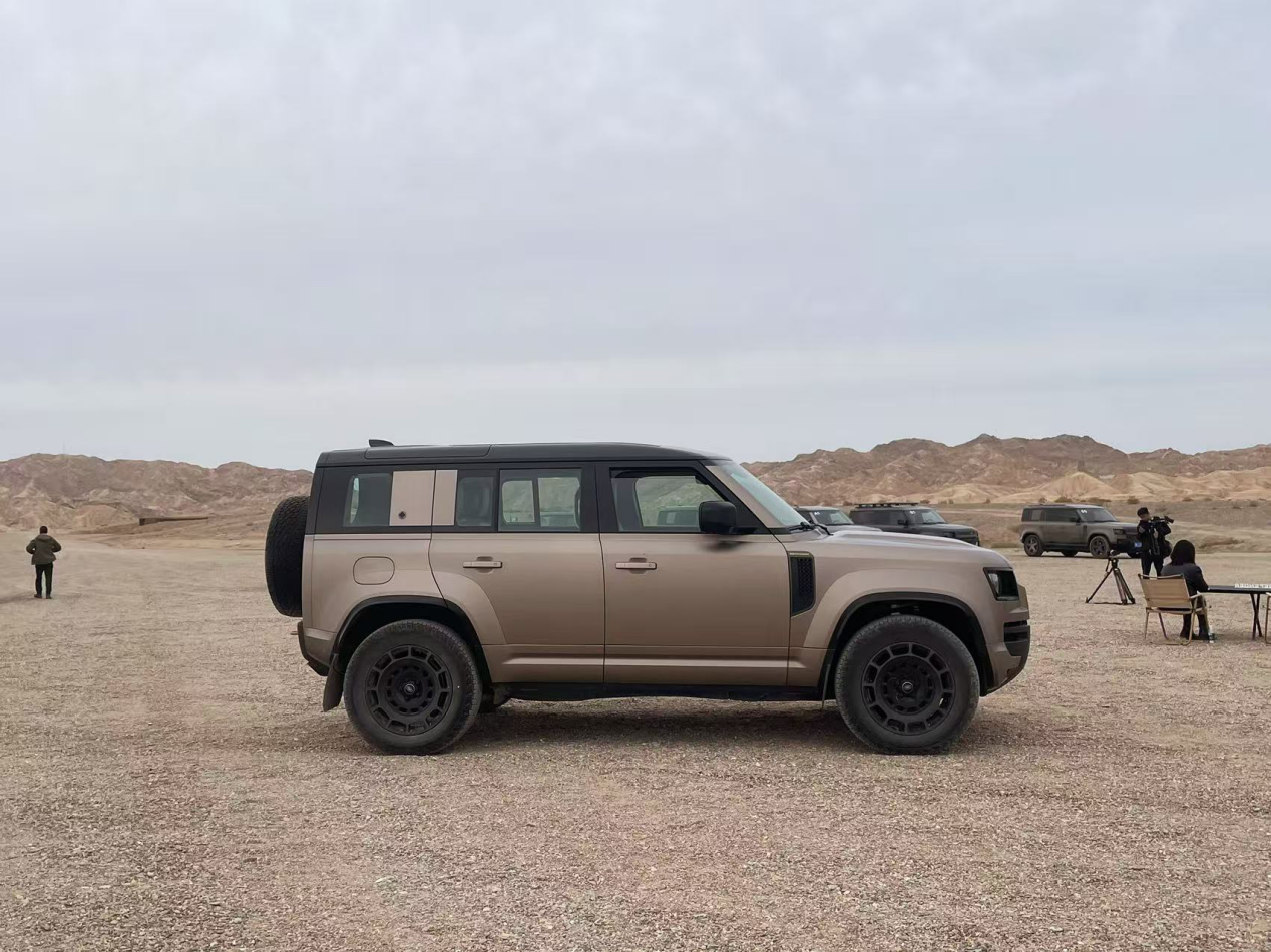 当车辆驶离铺装路面,进入戈壁腹地,这里才是卫士真正的主场。第二代智能全地形反馈适应系统提供8+1种模式,完美适配多样地貌:“沙地模式”下动力输出更平缓,避免车轮陷沙;293mm离地间隙与900mm涉水深度,让穿越间歇性溪流毫无压力,涉水感应系统实时提醒水位,安全感十足。