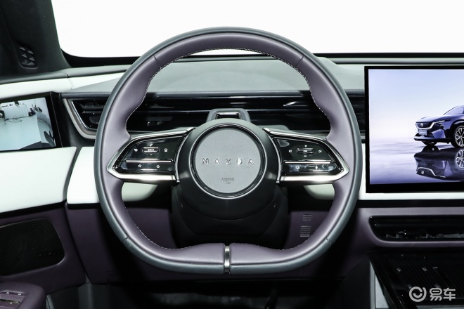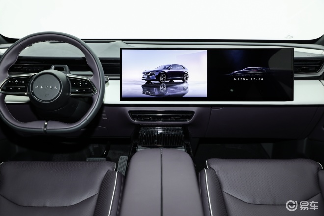 马自达EZ-60搭载了双辐平底方向盘以及怀挡式换挡机构。舒适性方面,新车搭载前排双120度零重力座椅,并拥有四座通风和加热功能。储物空间方面,新车后拥有126L前备箱空间以及最大可扩充至2036升的后备箱空间。