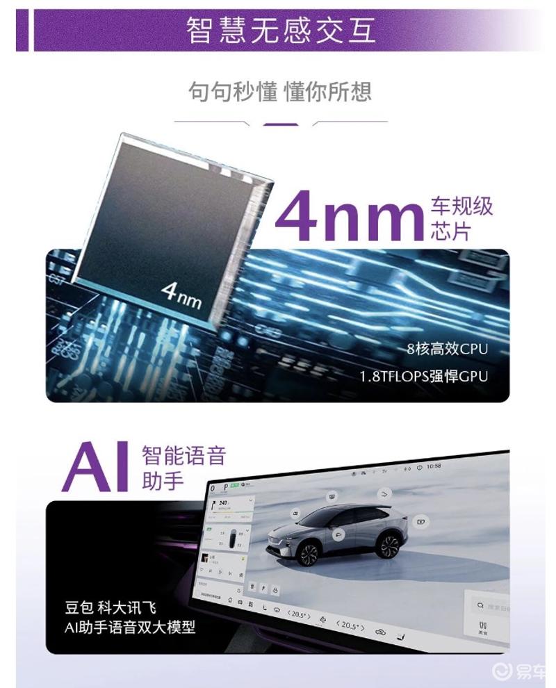 智能化方面,新车搭载4nm车规级芯片,拥有8核高效CPU,并配备AI智能语音助手,搭载豆包与科大讯飞联合打造的Al助手语音双大模型。智能驾驶辅助方面,马自达EZ-60搭载L2驾驶辅助系统,拥有1个800万像素高清摄像头、4个环视摄像头、5个毫米波雷达、12个超声波雷达,覆盖200+高频场景,拥有30+行泊一体辅助功能。