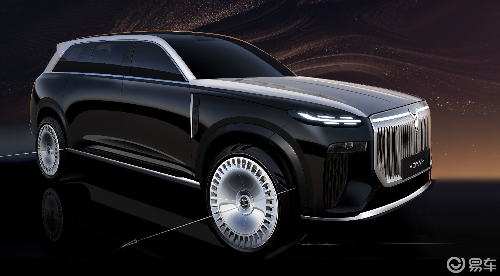手稿中的22寸天地之镜轮毂,更是 “雅” 的极致体现。劳斯莱斯同款大饼轮设计搭配电镀工艺,尽显豪华质感,悬浮 LOGO随轮毂转动时,仿佛轮转间照见山河,静止时又似收纳苍穹,将天地之美与智能悬浮科技融为一体。这种设计摒弃了过度强调科技感的浮夸,而是将科技巧妙融入文化意境之中,让岚图泰山的中式豪华更具深度与内涵。