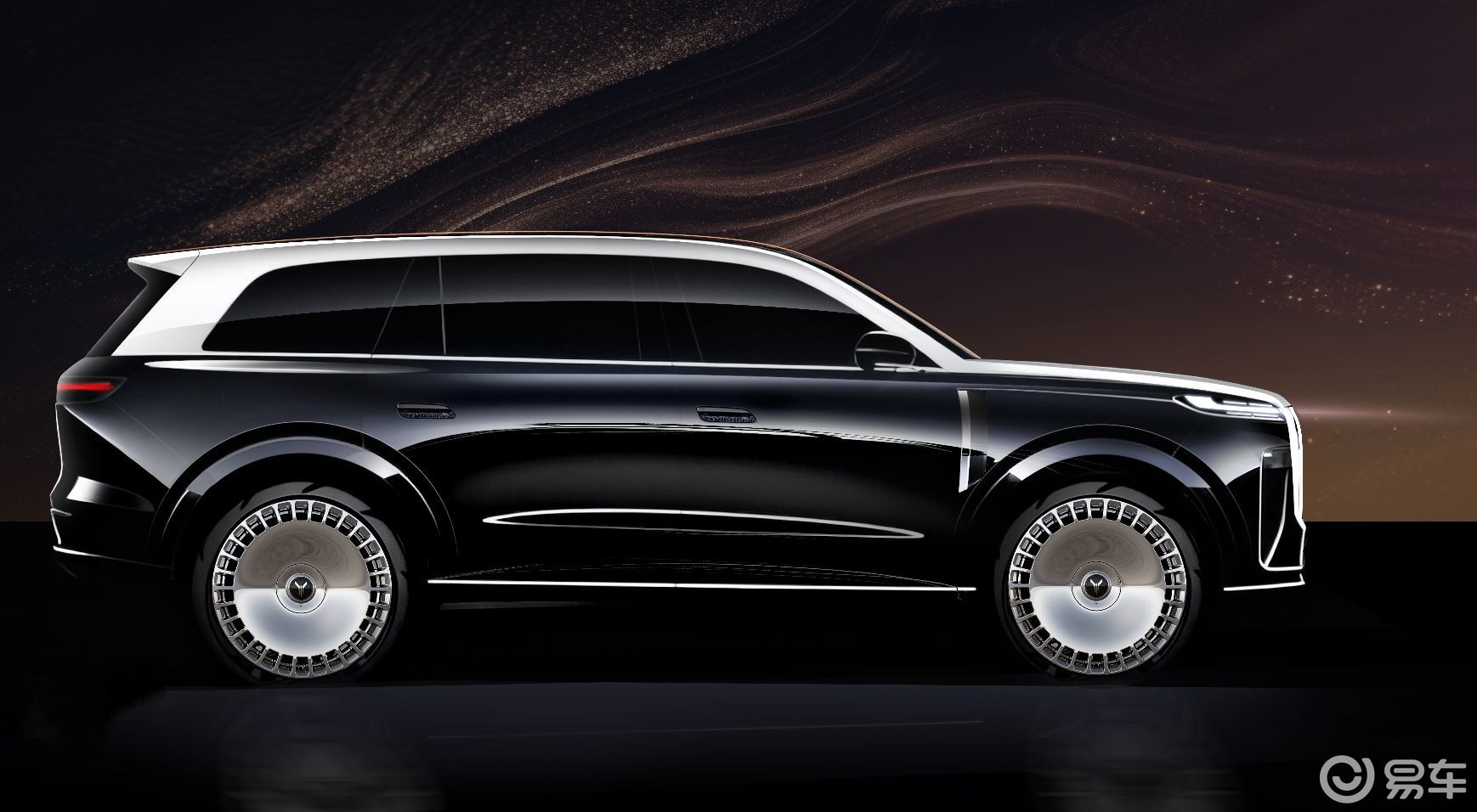 侧面手稿则进一步展现了 “极” 的魅力,流畅的腰线从车头延伸至车尾,如同山峦起伏的轮廓,既勾勒出车身的修长线条,又赋予了车辆强烈的力量感。前轮眉至前门的距离、车顶至车身底部的高度比例,都经过精心调配,使得整车在视觉上更显沉稳大气,宛如一件移动的艺术品。