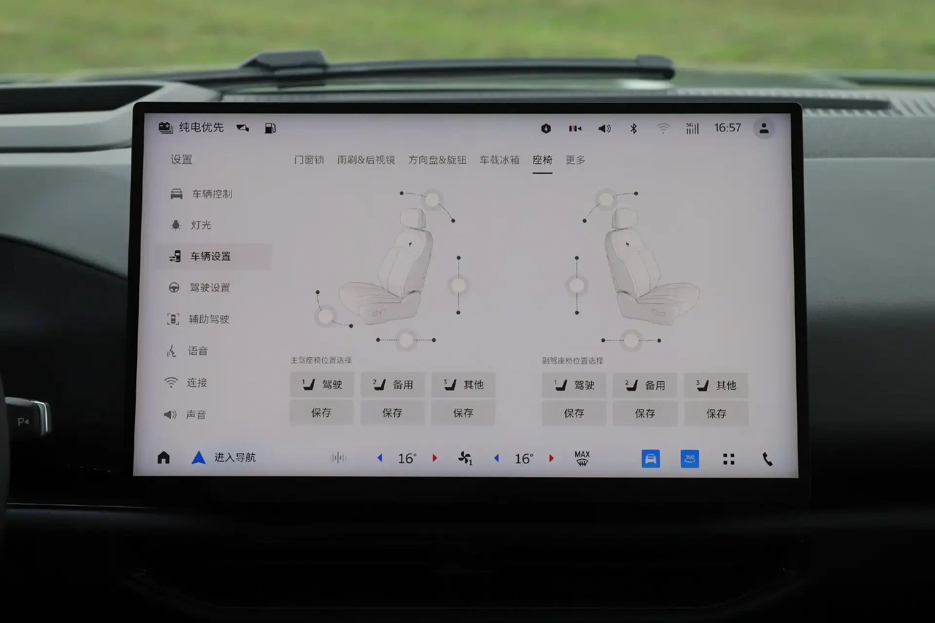 舒适便捷方面,在标配256色主动氛围灯、带负离子净化的双温区空调以及带前排加热/通风的电动记忆座椅的情况下,智趣烈马座椅也实现了全真皮覆盖,并为前排提供按摩、为二排提供加热功能。再加上21扬声器音响、方向盘加热等功能,这样的配套设施已经不算豪华,但还是那句话——能跟上高端国产的主流水平。