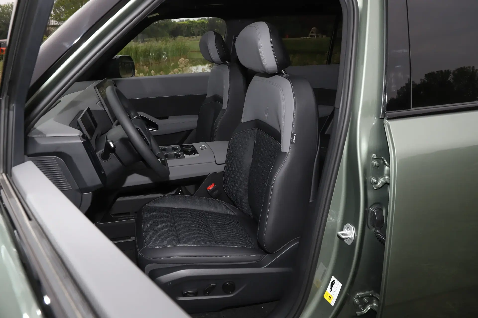 至于说底盘,智趣烈马也与钛7、深蓝G318一样搭载了“前双后五”豪华悬架组合,尽管缺少另外两者那样的可变悬架或是魔毯空悬,可凭借着标配智能四驱与对应的8种专业地形模式,还有福特在悬架调校方面的能力,车辆构建的越野基础依旧扎实。此外,增程版顶配车型还可获得前后桥差速锁,在本就实现了30°接近角、32°离去角以及600mm最大涉水深度的情况下,要去深度越野可能差点儿意思,但在通过性与脱困能力上依旧会优于两款国产竞品。