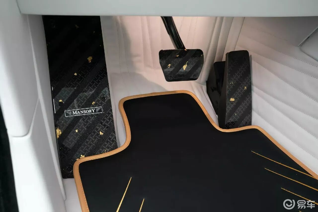 细节之处更是让人咋舌:座椅头枕刺绣着金色的Mansory Logo,音响格栅是镀金的,空调出风口的拨片是镀金的,就连藏在车门里的雨伞,手柄都换成了纯金打造。最绝的是,连安全带都换成了白色,与内饰配色融为一体,不放过任何一个可以彰显奢华的角落。